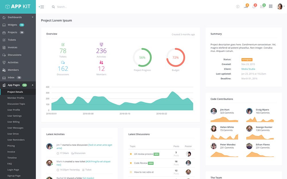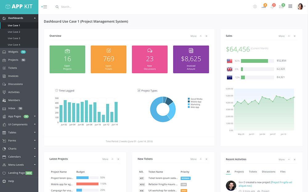 Check out AppKit - an Angular admin theme I created with my developer friend Tom Najdek for developers. AppKit uses modern front-end technologies and is packed with useful components and widgets to speed up your app development.